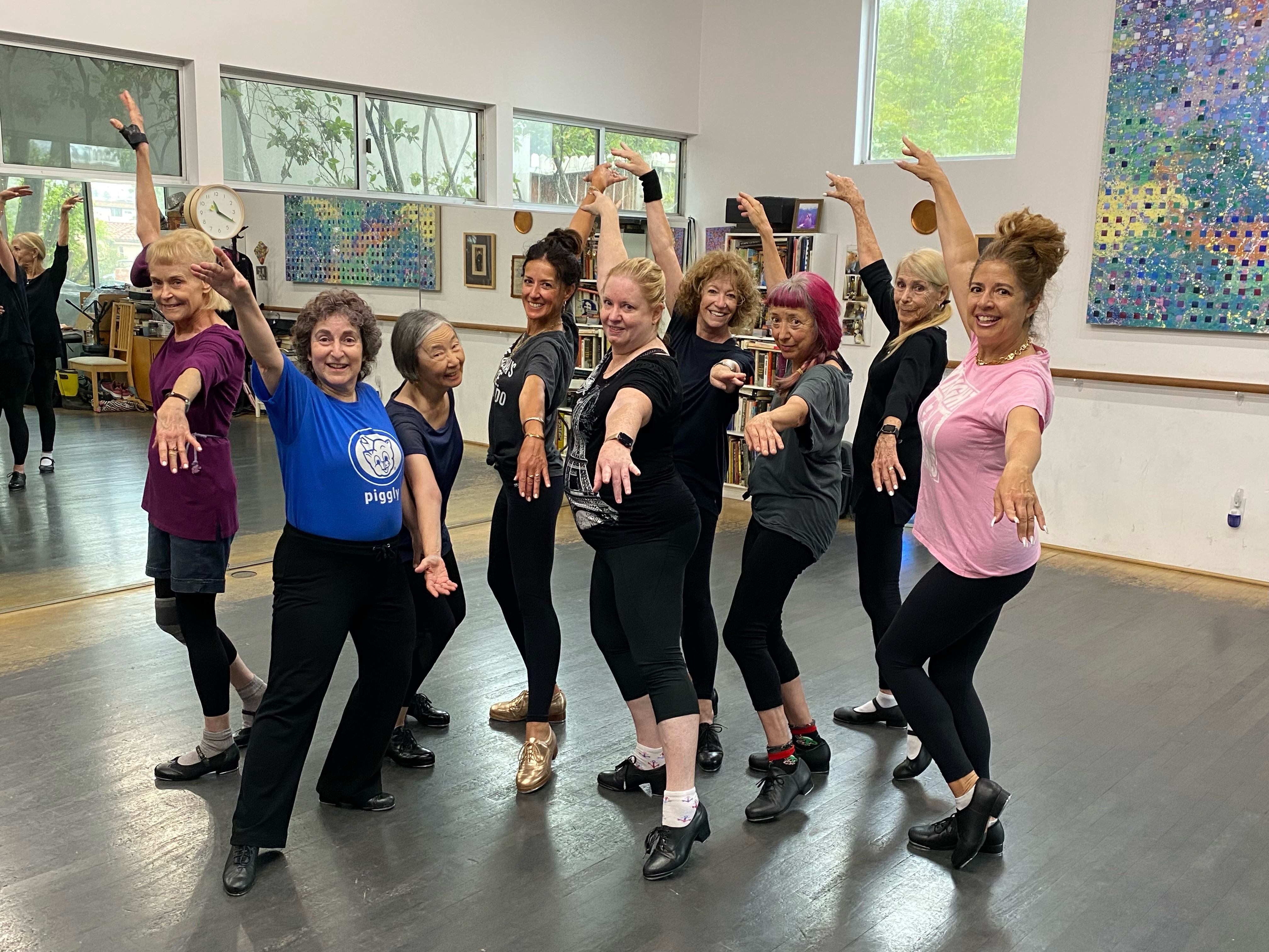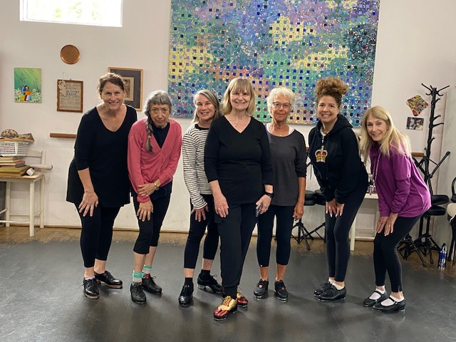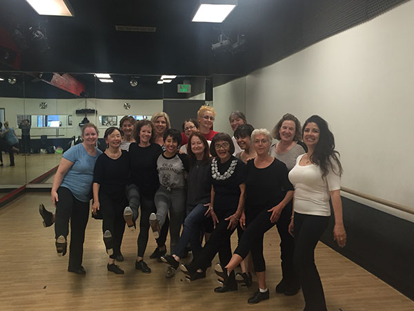 Our first time dancing with my amazing guest instructor Mary Wall (center)—and we loved every minute. Her teaching skills, energy, knowledge and love of tap came shining through! We were all some very happy tappers!